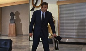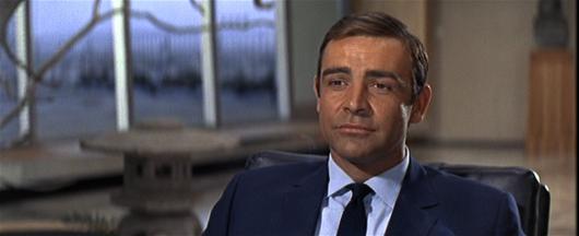In the film You Only Live Twice, Bond visits Japan wearing a suit in a lighter shade of blue than navy that is ideal for summer. In certain scenes, this suit has quite a shine and suggests a mohair/wool blend. Mohair and high twist wool are two of the best-performing suitings for warm weather because they breathe well and are great at resisting wrinkles. This is a classic Anthony Sinclair suit, with a 2-button front, natural shoulders with roped sleeveheads, a full chest and a gently suppressed waist. The jacket is detailed with a single vent, flapped pockets and 4-button cuffs. The trousers have double forward pleats, button side-adjusters and turn-ups.
