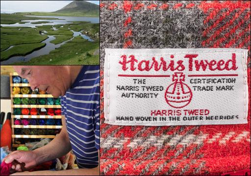 Harris Tweed is a cloth that has been handwoven by islanders at their homes in the Outer Hebrides of Scotland, finished in the Outer Hebrides, and made from pure virgin wool dyed and spun in the Outer Hebrides.